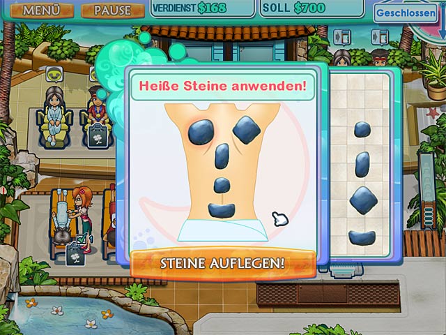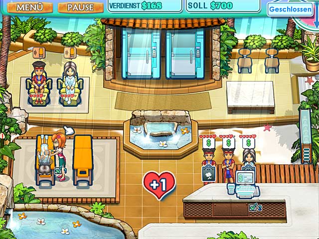 Nach einer wohlverdienten Pause von ihren Friseursalons entschliessen sich Sally und ihre Freundin Nelly, die Welt der Wellness-Center im Sturm zu erobern! Besuche sehenswerte Spa-Schauplätze auf der ganzen Welt, und überzeuge Deine Kunden, sich in „Sally’s Spa“ zu erholen. Verwöhne sie in diesem schnellen Gegen-die-Zeit-Spiel mit Gesichtsbehandlungen, Maniküren, Bädern, Massagen und mehr! - Sally's Spa