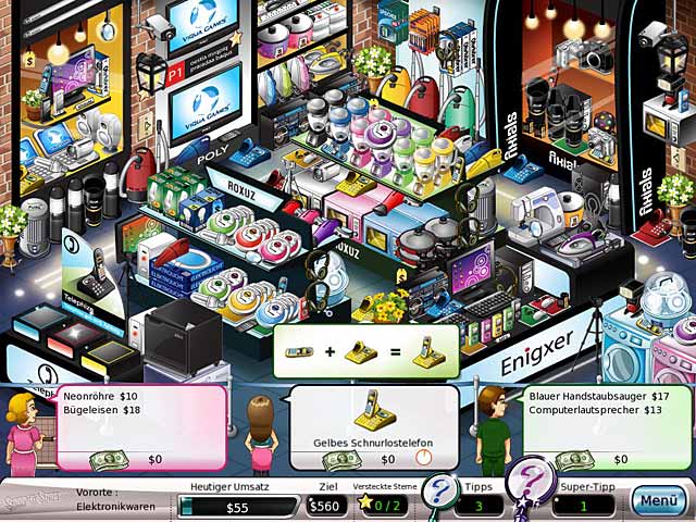 Halte in „Shop-N-Spree: Familienimperium“ Deine Geschäfte über Wasser! Stelle Dich der wirtschaftlichen Krise und halte Deine Kunden in diesem außergewöhnlichen Gegen-die-Zeit-Spiel bei Laune. Finde die Gegenstände auf den Einkaufslisten Deiner Kundschaft und lasse sie nicht gehen, bevor Du nicht jeden Wunsch erfüllt hast. Gehe mit gutem Beispiel voran und zeige Deinen Angestellten, wie man brandneue Läden gewinnbringend führt. - Shop-n-Spree-Familienimperium