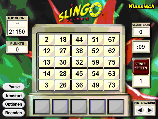 Slingo Deluxe - Slingo ist die perfekte Kombination aus "Bingo" und einer "Slot Maschine". Es wurde 1995 als reine Slot Maschine entwickelt und hat sich nach einem Jahr zu einem der grössten Multi-Player Spiele von America Online hochgearbeitet. Dieses neue Slingo Deluxe ist das erste Slingo was sich auch offline spielen lässt. - Slingo Deluxe