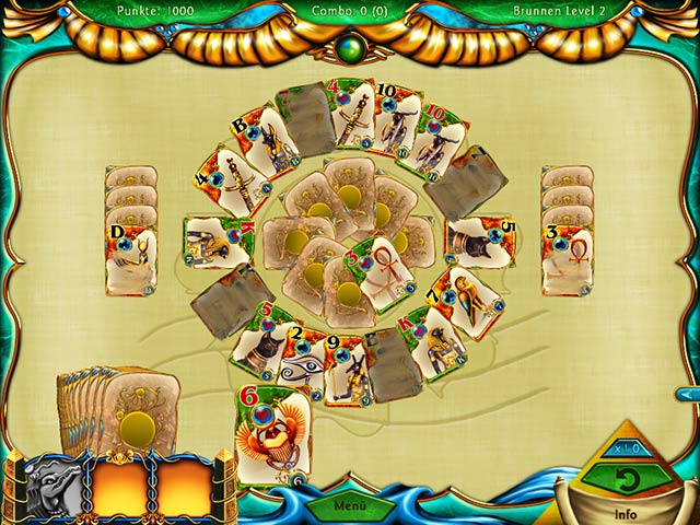 Eine blühende Nilmetropole wurde durch einen Sandsturm zerstört und soll schöner und fruchtbarer als je zuvor neu erschaffen werden. Übernimm das Amt des obersten Baumeisters im alten Ägypten und beginne sofort mit dem Aufbau. Ein Berater des Pharaos steht Dir dabei zur Seite. Spiele viele Level einer spannenden und unterhaltsamen Solitaire-Kampagne. Steigere Deinen Combo-Counter und sammle Punkte und wichtige Extras, um prunkvolle Häuser erbauen zu können. Mit dem Voranschreiten Deiner Baukunst werden Dir sogar die Götter gnädig und stehen mit zusätzlicher Hilfe zur Verfügung! Für eine ganz entspannte Runde Solitaire erwartet Dich in der Option „Freies Spiel“ weitere Varianten dieses beliebten Kartenspieles. - Solitaire Egypt