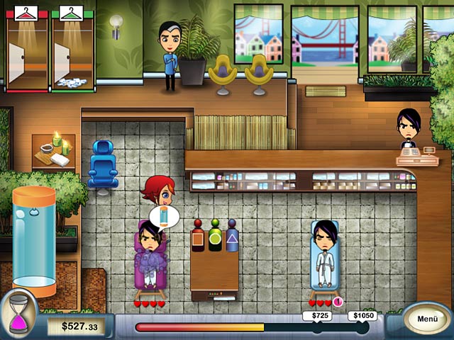 Jade ist eine Tierschützerin, die gegen die Kosmetikindustrie protestiert. Nachdem sie von Madame Dubois, einer Grösse der Schönheitsindustrie, herausgefordert wird, träumt Jade davon, ihren eigenen, umweltfreundlichen Spa zu eröffnen. Um dies zu ermöglichen, muss sie zunächst Erfahrung sammeln und in einem 5-Sterne Spa in San Francisco den besten Service liefern! Nutze in Spa Mania Deine Gegen-die-Zeit Fähigkeiten, um Deine Gäste mit Massagen, Gesichtsbehandlungen, Masken und mehr zu verwöhnen. Nutze Deinen verdienten Profit für Extras wie Ginseng Tee und andere Upgrades. Kannst Du den Spa leiten und gestresste Gäste zu verwöhnen? - Spa Mania