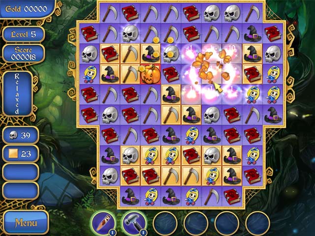 Entdecke dunkle Mächte, welche aus dem Herzen einer alten Stadt entweichen und sammle spukige Dekorationen für Deine Veranda und den Vorgarten! Lass ich bezaubern von diesem Spukig-Spassigen Grusel-Puzzel! Sammle gleichartige Objekte, um das Böse zu bezwingen, sowie Gold und Power-ups. Kaufe Gartendekorationen, die Dir während des Spielens helfen. Setze explodierende Kürbisse, sowie silberne Kreuze und heiliges Wasser ein! Die Zeit ist reif, das finstere Geheimnis von Spooky Bonus zu lüften! Ein Abenteuer, dass das Blut in Deinen Adern gefrieren lassen wird, erwartet Dich! - Spooky Bonus