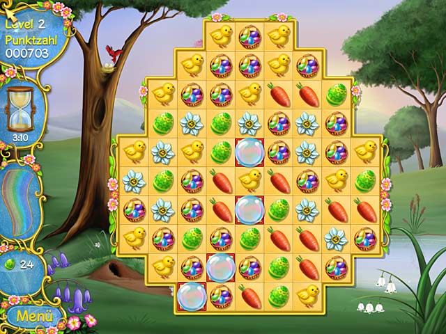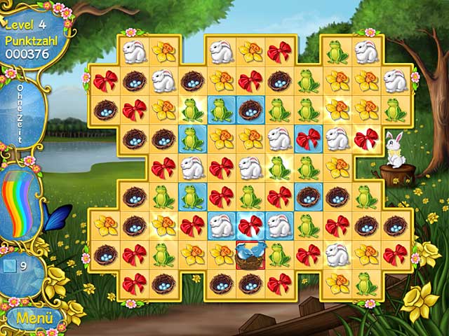 Frühling liegt in der Luft! Durchstreife die wunderschöne Frühlingslandschaft mit Deinen niedlichen Tiergefährten. Hilf dem Osterhasen, den magischen Regenbogen zu entfachen und den eisigen Hauch des Winters zu vertreiben. Triff auf zahlreiche niedliche Gefährten, wie flauschige Küken und Hasen. Dieses 3-Gewinnt-Spiel spart nicht an Boni und Spielspaß für die ganze Familie! - Spring Bonus