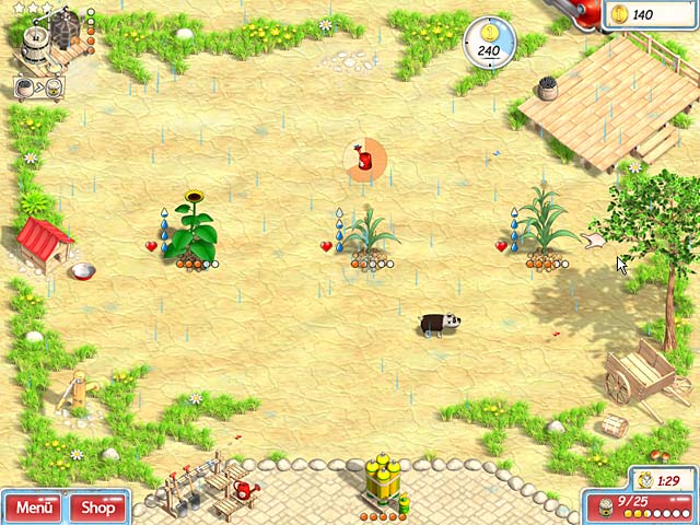 Über Dir der blaue Himmel, unter Dir der fruchtbare Boden, der nur darauf wartet, von Dir bestellt zu werden. Krämpel die Ärmel hoch, schnapp Dir die Schaufel und los gehts: Bewirtschafte das Land, pflanze die Saat und bewässere nach Herzenslust! Verkaufe Deine Ernte, um Geld für Deine Farm zu verdienen. In „Sunshine Acres“ erhältst Du ein großes Stück Land, dass Dir zur Kultivierung zur Verfügung steht. In diesem fruchtbaren Gegen-die-Zeit-Spiel betreibst Du fünf landwirtschaftliche Produktionsanlagen und pflügst Dich durch 30 Levels! - Sunshine Acres