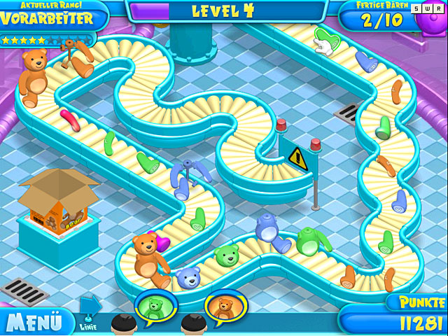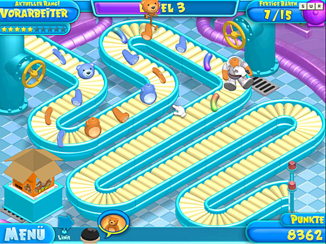 Wer hätte gedacht, dass die Arbeit in einer Fabrik so viel Spaß machen kann? Die Waisenkinder brauchen Teddybären, und der grausame neue Besitzer der Teddyfabrik lässt Sie dafür schuften! Sammel Teddybärteile, und setze sie zu süßen Kuscheltieren zusammen, bevor sie das Ende des Fließbands erreichen. Wenn du erfolgreich bist, erklimme die Karriereleiter und gelange zu neuen Spielsachen und Fabriken. Wenn du hingegen scheiterst, hat dies viele traurige Waisenkinder zur Folge. Starte noch heute in diesen Puzzlespaß! - Teddy Factory