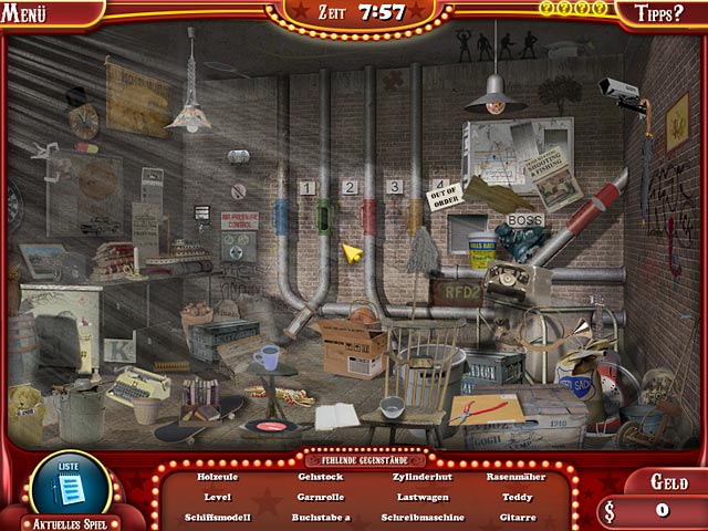 Wolltest Du schon immer Millionär werden? Sonne Dich im Glanz der Scheinwerfer einer Spiel-Show und kombiniere dies mit der Suche nach clever versteckten Objekten. Du findest Dich in einem verlassenen Filmstudio wieder, um nach versteckten Objekten in 30 unterschiedlichen Schauplätzen zu suchen. Werde Kandidat in der Hidden Object Show und gewinne bis zu 8 Millionen (virtuelle) Dollar in Preisen. Von den Machern von Escape the Museum kommt ein Wimmelbild-Spiel mit Game Show Spass! Es ist Zeit, Dein Starpotential zu nutzen und die Herausforderungen der Hidden Object Show anzunehmen! - The Hidden Object Show