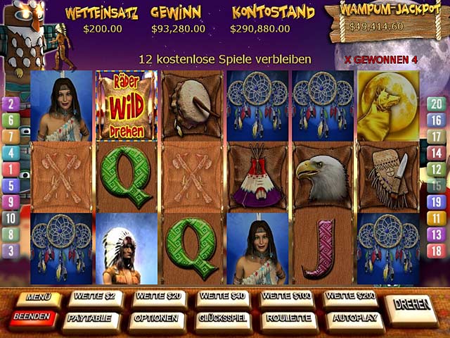 Spiel eine Runde Slots am „Totem Treasure 2“-Spielautomaten und schau, ob die Totempfähle Dir Glück bringen! Finde „Totem-Boni“ im Überfluss und achte auf die mystischen Tiere, die Dir den grössten Gewinn bringen: den „Wampum-Jackpot“! Finde den Indianerhäuptling, denn er ist Dein Joker und kann Dir helfen, noch mehr zu gewinnen. Lehn Dich zurück und beobachte, wie die Walzen sich drehen und wie sich Dein Gewinn vergrössert! - Totem Treasure 2