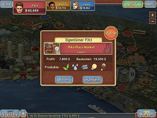 Kaufe Immobilien in verschiedenen Städten und führe Deine Firma in „Trade Mania“ zum Erfolg! Stelle Dich dem Immobilienmarkt und meistere einzigartiges Spielvergnügen! Kaufe Immobilien auf den Karten richtiger Städte und fühle Dich dabei wie ein Millionär! Werde zu einem Immobilien-Mogul! - Trade Mania