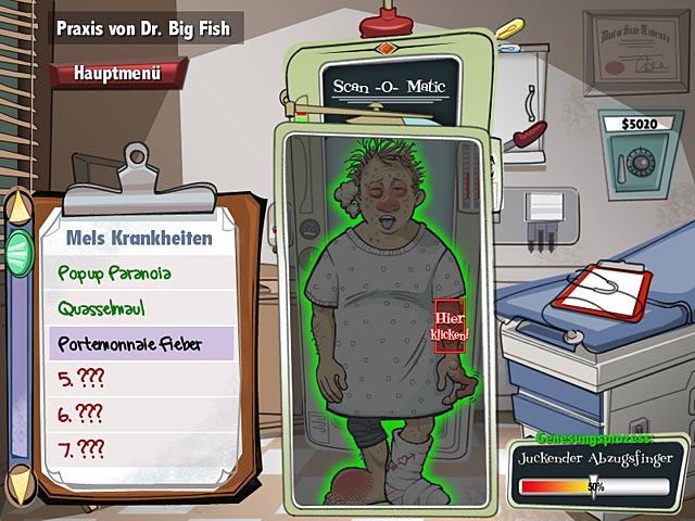 In „Unwell Mel“ bist Du der Doktor im Haus! Der arme Mel hat alle möglichen Krankheiten gleichzeitig, und Du bist der Einzigste, der ihm helfen kann. Benutze Deinen Scanner, um herauszufinden, ob seine Erkrankungen vom vielen Fastfood, oder durch seltene Viren hervorgerufen wurden, und mach Dich an die Arbeit. Kombiniere Medizin, um Mels seltsame Krankheiten zu kurieren, damit es ihm bald wieder besser geht. Kaufe einmal wöchentlich spezielle Heilmittel ein, wie Schlangenöl, um den Genesungsprozeß zu beschleunigen. Hilf Mel noch heute, wieder gesund zu werden! - Unwell Mel