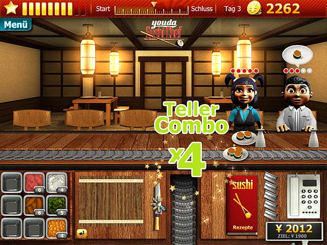 Eröffne in „Youda Sushi Chef“ Dein eigenes Sushi-Restaurant und avanciere zu einem wahren Sushi-Meister! Verbessere Dein Restaurant stetig und erlerne neue Rezepte. Dekoriere Dein Restaurant, erlerne tolle Messer-Tricks und stelle Deine wartenden Kunden zufrieden, indem Du ihnen köstlichen Sake servierst. Arbeite in diesem Gegen-die-Zeit-Spiel schnell und effizient, um Kombos zu erreichen und werde so zum wahren Sushi-Meister! - Youda Sushi Chef