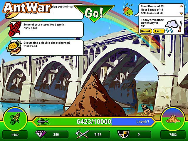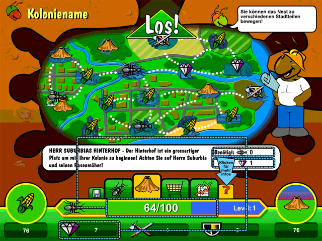 In dieser Simulation eines kleinen Naturimperiums schickst Du Deine Kundschafter auf die Suche nach Nahrung, achtest darauf, dass die Pflegerinnen ordentlich für die kleinen Ameisen sorgen, dass die Arbeiter graben und eine mächtige Armee aufstellen. Mit seinen fantastischen Comic-Grafiken, der mitreißenden Musik und ausgeklügelten Strategie ist dieses Spiel der perfekte Zeitvertrieb für die ganze Familie. - Ant War