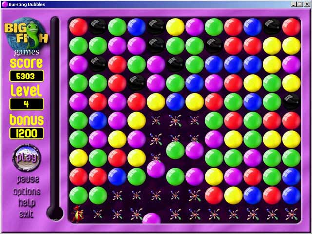 Zum Platzen voll mit faszinierenden Rätseln! Ordne die Blasen, die unten vom Bildschirm aufsteigen, in Gruppen an. Je größer die Explosion, desto größer der Bonus. Treffe Deine Auswahl wohlüberlegt, um viele Punkte zu kassieren. Aufregende Grafiken, lustige Soundeffekte und verschiedene Spielmodi sorgen dafür, dass das Platzen der Blasen einen Riesenspaß für die ganze Familie darstellt. - Bursting Bubbles