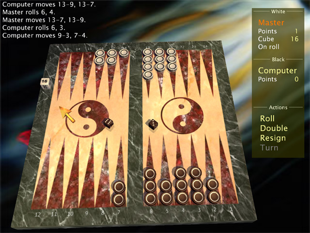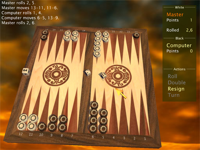MaxGammon ist das klassische Backgammon Spiel mit allen Funktionen. Die Farbenreiche 3D-Grafik und austauschbare Hintergrundbilder, sowie eine ganze Reihe weiterer Funktionen machen dieses Spiel zu einem des besten Backgammons für Deinen PC. - MaxGammon