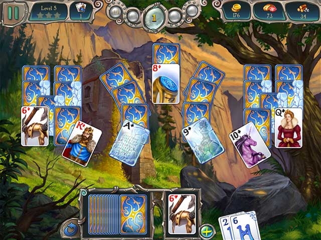 The fate of Camelot is in your hands! The Druids of Avalon channel the forces of nature through their magic cards, using them to weave powerful spells of growth and healing. There are rules to their magic, however, and the cards must be placed in the correct order by a careful hand in order to function. Although reclusive by nature, the druids have a long-standing alliance with King Arthur and his knights of Camelot, having pledged to come to their aid in times of need. Now is such a time! Camelot lies in ruins, sacked by goblins and the King needs your help to rebuild it. Harness the power of the cards as you travel across Avalon through 300 meticulously crafted levels of engaging solitaire. Collect the resources you need to restore the kingdom to glory! Do you have what it takes to save Avalon? - Avalon Legends Solitaire 2