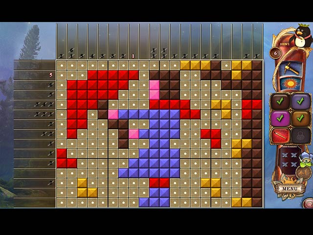 Join the penguin family as they travel to the edge of the world to extend the mosaics color palette! This thrilling adventure brings a new challenging collection of puzzles that will lead you through a unique landscape. Help the mysterious penguin as she takes the penguin family on an expedition to make new discoveries. - Fantasy Mosaics 19: Edge of the World