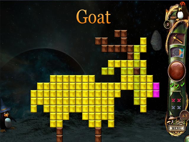 Join our penguin on a journey to explore a mysterious alien world and meet its inhabitants! Experience this new installment of mosaics puzzles in rainbow colors! Collect and use the new sun power-up. Enjoy new features and an improved map layout that shows your achievements along with puzzle images. Following the tradition of exciting multi-color gameplay, this new collection of custom built puzzles will bring you hours of fun and discovery! - Fantasy Mosaics 6: Into the Unknown