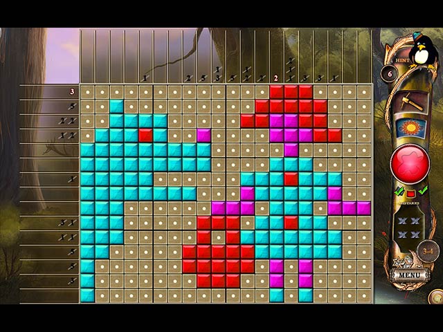 Follow the penguin to a mysterious world and help him find his way back home. On your journey, experience a new collection of colorful images hidden in patterns of mosaic and numbers. Challenge your mind with this new installment of Fantasy Mosaics! - Fantasy Mosaics 9: Portal in the Woods