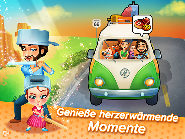 Patrick reparierte Emilys Van und schon stapeln sich die Mädchen und Jungen der O'Malleys hinein, um die Route 66, die Mother Road, zu bereisen! Unterwegs treffen sie alte und neue Freunde und helfen allen im wahren Emily-Stil! Bist Du bereit, die Herausforderungen einer Köchin, einer Frau, einer Mutter UND einer Prominenten zu meistern? Dies ist kein gewöhnliches Kochspiel. Setze Deine Zeitmanagementfähigkeiten ein, während Du köstliche Gerichte zubereitest und Deinen Kunden rechtzeitig das Essen servierst. Hast Du die Leidenschaft, in der Küche herumzusausen und einen Sturm zu entfachen? Um in dem Wirbel den Überblick zu behalten, musst Du voll dabei sein. Koche und arbeite hart, um Deine Lebensmittel und Ausrüstung zu verbessern. Plane Mädchenzeit mit Paige ein und spiele mit den Zwillingen. Schaffst Du es, eine entspannende Pause einzulegen, während Du im rasendem Tempo von Ort zu Ort hastest? Dies ist eine exklusive Sammleredition voller Extras, die nicht in der Standardedition enthalten sind. Als Bonus erhältst Du mit dem Erwerb von Sammlereditionen 3 Stempel auf Deiner Monatsprämienkarte! Die Sammleredition beinhaltet: - Delicious: Emily's Road Trip Sammleredition