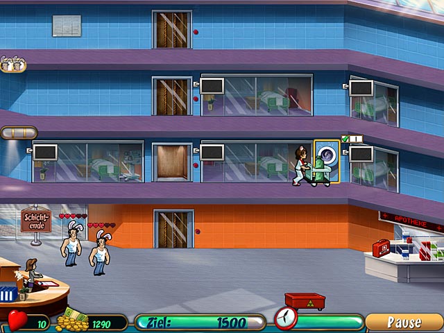 Hilf Krankenschwester Sally schnellstmöglich ihre Patienten in „Hospital Haste“, einem mitreißenden Gegen-die-Zeit-Spiel, zu untersuchen, zu behandeln und zu heilen. Jeder Patient hat eine andere Persönlichkeit, also höre Dir ihre Beschwerden genau an! Entdecke verschiedene Krankheiten und schicke alle Kranken wieder gesund nach Hause. Verwandle das heruntergekommene Krankenhaus in ein modernes, medizinisches Wunder, indem Du verschiedene Geräte aufrüstest. - Hospital Haste