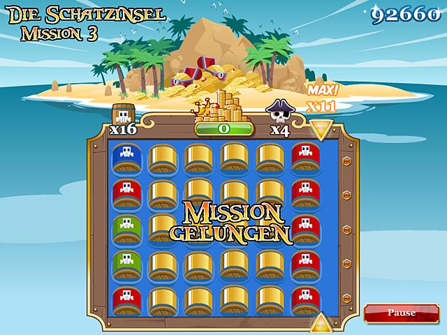 Ikibago ist ein aktionsreiches 3-Gewinnt Spiel besonderem Twist! Schlüpf in die Rolle eines Piraten und mach Dich auf in die Karibik, den verschollenen Ikibago-Edelstein zu finden. Reihe mindestens drei gleichfarbige Fässer aneinander, um sie zu zerstören, während sie nach rechts rollen. Tausche Fässer im Spielfeld, um die besten Kombinationen zu finden! - Ikibago