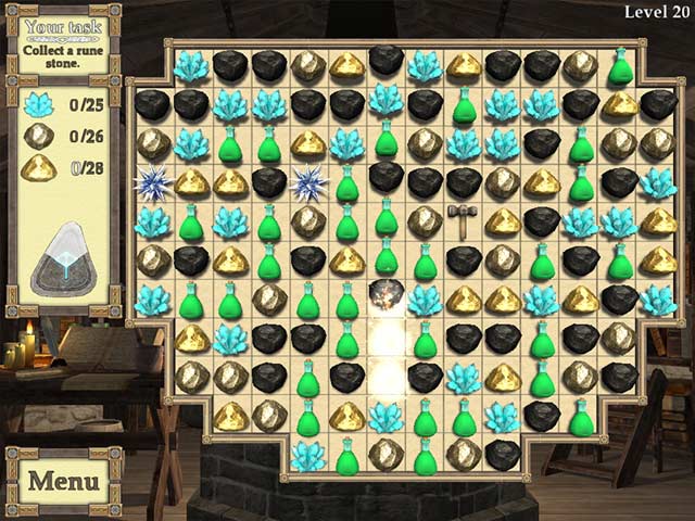 Der Frieden ist im Zwergenreich wieder eingekehrt, nachdem sie den bösen Zauberer besiegt haben. Während des Krieges wurden viele Siedlungen zerstört und das Land ist unbrauchbar. Es ist an der Zeit, die Minen und Gebäude wieder aufzubauen und das Königreich zu neuem Leben zu erwecken. Nachdem alle Werkzeuge und Manuskripte eingesammlet wurden, macht sich eine Gruppe mutiger Zwerge auf den Weg in den Norden. Hier befindet sich die älteste Stadt der Zwerge. Hilf ihnen in diesem 3-Gewinnt-Abeneteuer, die Stadt wieder zum Leben zu erwecken, mache Platz für die neuen Bauten und erstelle neue Runensteine, die das Reich schützen sollen. Das ist eine sehr wichtige Mission! Es gibt viel zu tun! - Rune Stones Quest 2