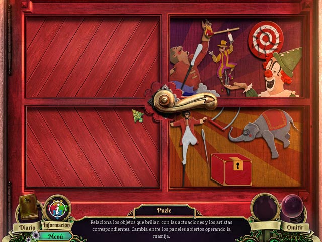 ¡Encuentra a una mujer perdida en la misteriosa feria del terror! Investiga en dos mundos: el que conoces y uno alterno que existe detrás de la casa de los espejos. Ahí descubrirás el secreto de un ser ancestral conocido como “El Maligno”. Viaja por distintas dimensiones, revela la historia de los amantes desafortunados e impide que El Maligno invada nuestro mundo. ¡Restaura las fuerzas del bien y el mal en esta emocionante aventura de objetos ocultos! - Dark Arcana: The Carnival