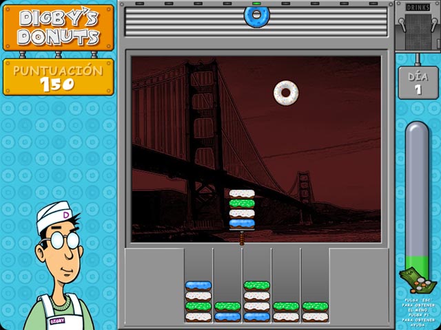 ¡Nadie puede resistirse a los deliciosos donuts de Digby! ¡Únete a Digby en su aventura empresarial por montar una cadena de tiendas de donuts por las ciudades más importantes del país! Coge, apila y deposita donuts de colores para formar pilas y combos evitando siempre errores garrafales. ¡Rondas de bonificación, original música y deliciosos donuts se añaden a la diversión! - Digby`s Donuts