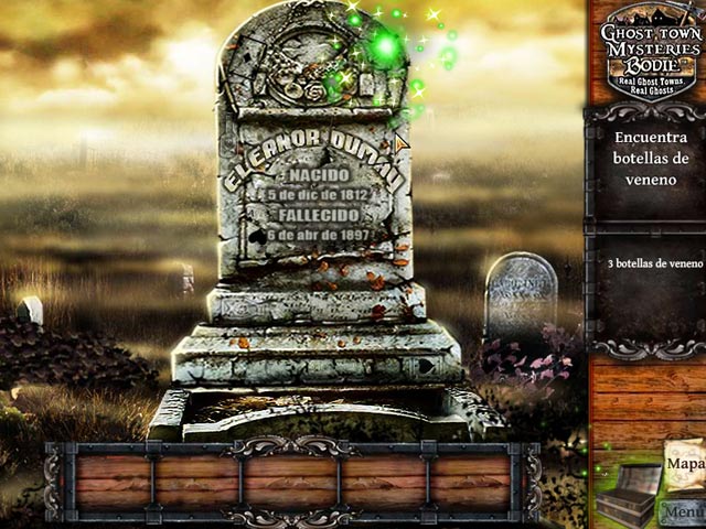 ¡Explora una ciudad fantasma y resuelve el misterio de Evelyn Byers, una niña que murió hace más de cien años! Numerosos visitantes han comentado que han visto al fantasma de la pequeña merodeando por la ciudad. Además, varias lápidas del cementerio han desaparecido. Depende de ti resolver este misterioso caso Objetos Ocultos de una vez por todas. ¡Sigue la pista de sucesos paranormales en Ghost Town Mysteries: Bodie! - Ghost Town Mysteries: Bodie
