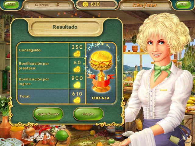 Ayuda a Victoria a hacer las paces con su enfadado padre inaugurando una cadena de restaurantes exóticos en Gourmania 3: Zoo Zoom. Encuentra los ingredientes para preparar picantes fajitas en Tres Amigos o condimenta una rica ensalada griega que te hará agua la boca en Mesas de Esopo. No tendrás ni un minuto para aburrirte pues tendrás que trabajar muy rápido sirviendo café en tu exótica confitería o preparando dulces helados en Playas y Cremas para así complacer a tus clientes y aumentar tus ganancias. - Gourmania 3: Zoo Zoom