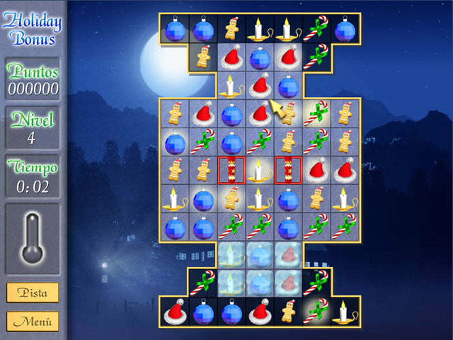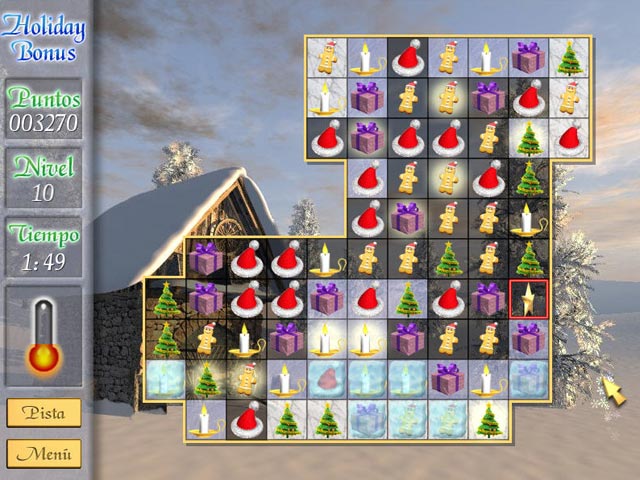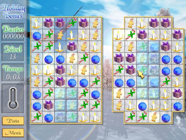 ¿Qué hay en la bolsa de Papá Noel? ¡Un Holiday Bonus para toda la familia! Relájate con este juego de puzzle temático de invierno, ordena los adornos navideños en paisajes nevados y decora minuciosamente el árbol de navidad. Haz los movimientos necesarios y tus potenciadores crearán un bonus más explosivo. ¡No te pierdas toda la diversión de las fiestas en Holiday Bonus, un entretenido juego de Puzzle! - Holiday Bonus