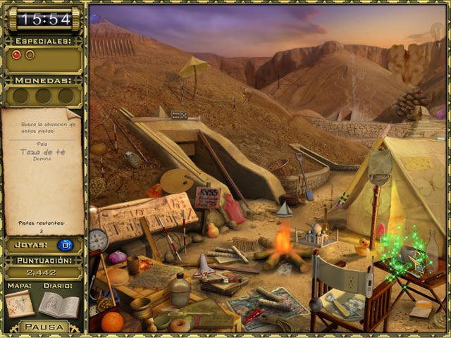 Rupert y Emma, dos intrépidos aventureros, viajan a Egipto, tierra de misterios e intrigas, en busca de tesoros y joyas ocultos en fascinantes palacios y jardines. Intercambia joyas, resuelve rompecabezas y atrévete con esta emocionante odisea. ¡Adéntrate en Jewel Quest Mystery: Curse of the Emerald Tear, un juego de Objetos Ocultos envuelto en la atmósfera mística del Antiguo Egipto! - Jewel Quest Mysteries: Curse of the Emerald Tear