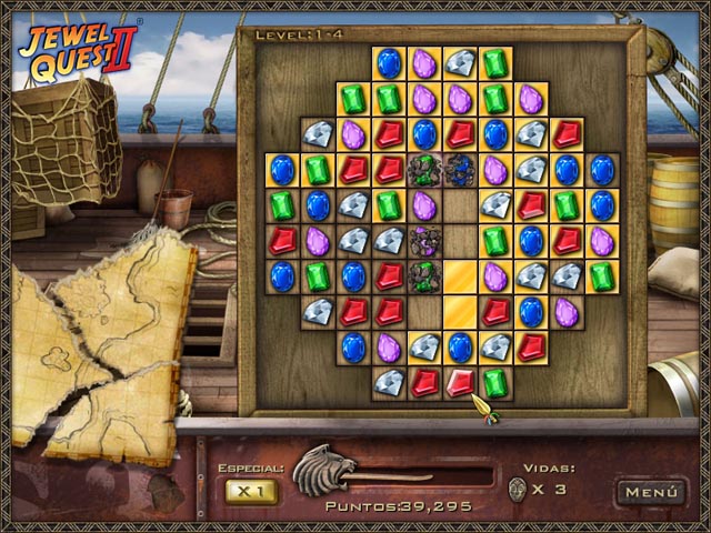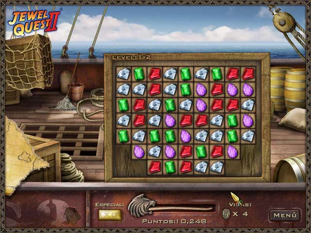 África, 1944. Únete al profesor Pack en la última aventura de combinar joyas a lo ancho y largo del continente más rico del mundo. Cambia de lugar maravillosas reliquias para convertirlas en oro mientras avanzas implacablemente por los puzles. La emoción del safari, la historia de las ruinas de Zimbabwe y las majestuosas cataratas Victoria te están esperando. Repleto de puzles, tesoros y novedades, Jewel Quest II es la aventura que estabas esperando. - Jewel Quest II