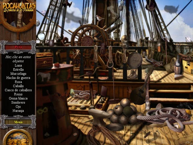 ¡Sigue a Pocahontas en este increíble viaje desde un desconocido Nuevo Mundo hasta la gran metrópolis de Londres! Conoce al capitán John Smith y sigue su romántica historia de amor con Pocahontas, la Princesa de los Powhatan. Surca los mares en busca de aventuras en tierras extrañas e inhóspitas. ¡Explora magníficos escenarios cargados de Objetos Ocultos de la mano de Pocahontas! ¿Logrará triunfar el amor? - Pocahontas: la Princesa de los Powhatan