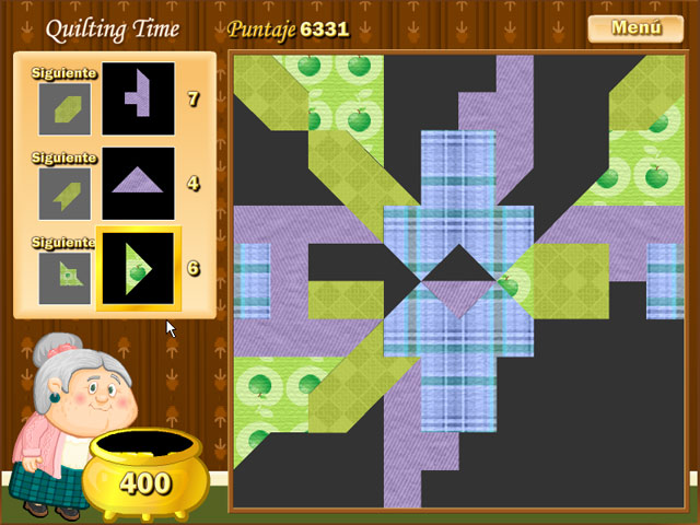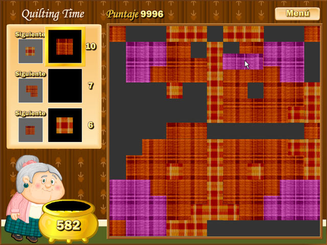 ¡Prepárate para pasar horas y horas de diversión con la abuela en este fascinante juego de rompecabezas! ¡Es hora de hacer colchas! Cada colcha tiene un diseño diferente y tu objetivo es impresionar a la abuela descubriendo los patrones y completando las colchas antes de que se acabe el tiempo. ¡Con cientos de diseños y montones de telas diferentes, la variedad de colchas posibles es infinita! - Quilting Time