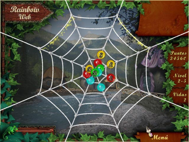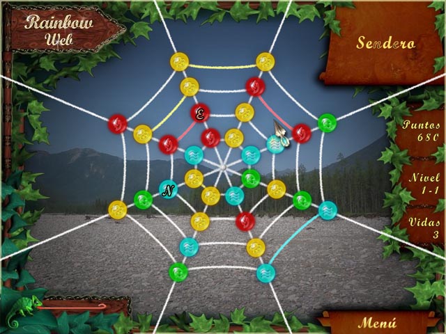 Los abalorios son aleatoriamentes dispersados por una red, está en tus manos ayudar a formar las palabras. Piensa cómo formar líneas de tres o más abalorios del mismo color. Date prisa en formar palabras y salvar el Reino del Arco Iris. - Rainbow Web