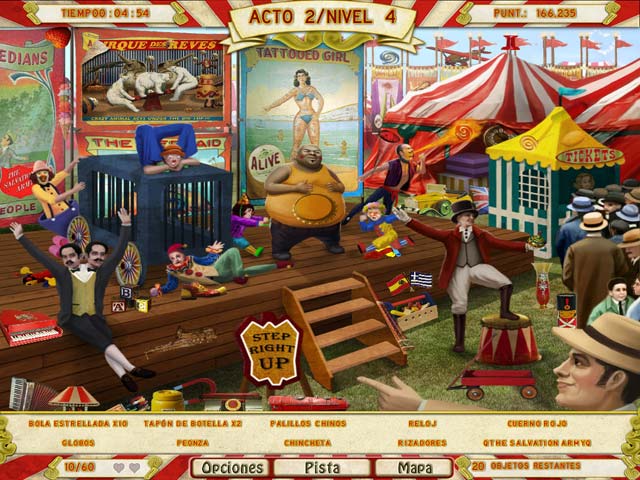 Este asombroso juego de objetos ocultos, ambientado en la Francia de los años 30, te transportará al pasado, a un inolvidable viaje de amor, lucha, esperanza y determinación. Únete a Mathilde, una hermosa joven, en la miseria a causa de la fiebre escarlatina, que queda prendada del colorido mundo del circo itinerante. Ayúdala en su lucha por sobresalir y robarse el corazón del guapísimo entrenador de animales. Espléndidas imágenes, espectaculares disfraces y una tierna historia de amor que te transportará a la elegancia y el estilo de los años 30. Déjate atrapar por: Runaway with the Circus. - Runaway With The Circus