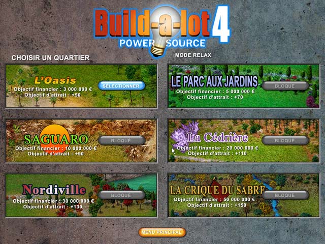 Aidez des villes accueillantes à grandir en construisant des quartiers agréables aux énergies durables dans ce jeu moderne de gestion du temps. Attention aux surcharges de courant ! Si vous construisez trop vite, vous rencontrerez des pannes et les locataires seront malheureux. Construisez des tours solaires et éoliennes, créez des quartiers où il fait bon vivre en bâtissant des courts de tennis, piscines, boutiques et bien plus encore dans Build-a-lot 4: Power Source. - Build-a-Lot 4: Power Source