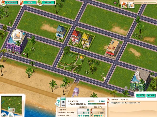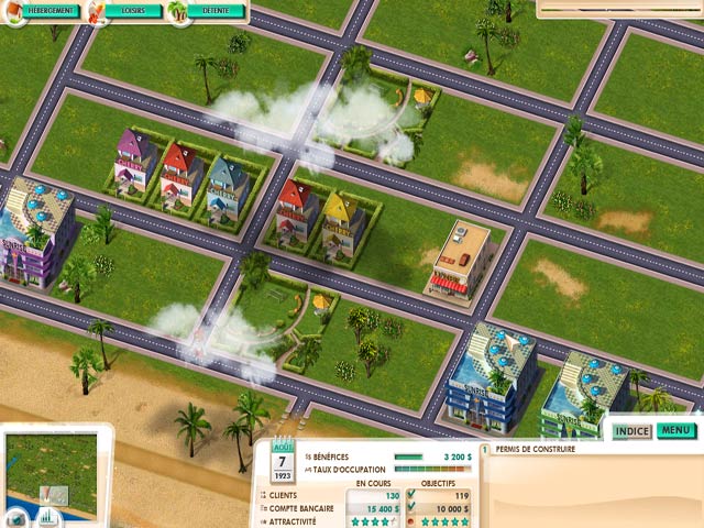 Vous venez d'hériter d'une somme d'argent considérable et d'une portion de terrain d'une surface non négligeable à Miami Beach. Mettez sur pied une station balnéaire florissante. Démarrez en 1920 avec de simples bungalows et atteignez des sommets insoupçonnés du haut d'hôtels géants avec vue sur la mer. À chaque niveau, une nouvelle année. Faites fortune avec vos hôtels, alors que vos espaces de détente augmentent l'attractivité de votre ville dans ce jeu de gestion du temps passionnant. - Build It! Miami Beach Resort