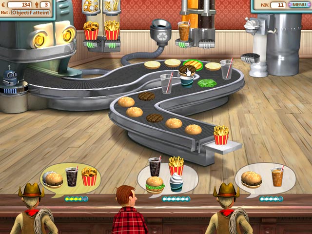 Après avoir reçu des plans étranges par courrier, vous construisez un robot culinaire extraordinaire et ouvrez un restaurant. Cuisinez et faites plaisir à une variété de clients jusqu'à ce que vous découvriez la vérité se cachant derrière ces mystérieux plans. Essayez les différents modes de jeu de Burger Shop tels que le mode Scénario, le mode Défi et le mode Relax. - Burger Shop