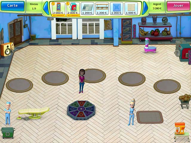 Servez des boissons rafraîchissantes et des serviettes chaudes à vos clients en sueur après une session d'entraînements. Procurez-vous une variété d'améliorations pour que tout le monde reste satisfait en attendant son tour de danser. Embauchez un entraineur de fitness et un masseur, ainsi vous pouvez vous concentrer sur chaque pas de Hip Hop de vos clients. - Dancing Craze
