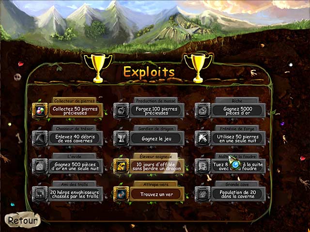 Devenez le gardien d'une caverne de dragons, nourrissez-les, combattez les assaillants et récoltez de magnifiques pierres précieuses. Avec toutes les pierres récoltées vous pourrez confectionner des bijoux qui se vendront à prix d'or et vous permettront de fournir à vos animaux le confort nécessaire à leur bien-être ! - Dragon Keeper