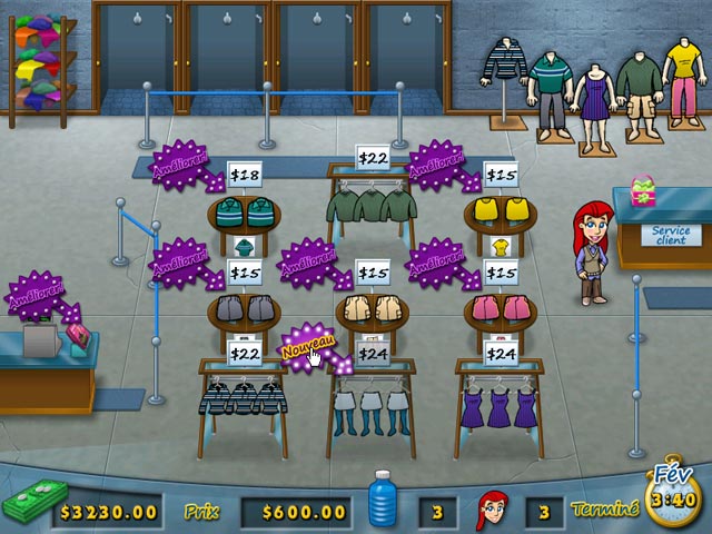 Francie vient d’obtenir un nouveau boulot à Uber-Mart et vous devez l’aider à diriger ce magasin de vêtements très animé. Les cabines d’essayage devront être nettoyées, les tables devront être restockées, et les clients auront besoin d’être aidés. Passez la première année à Uber-Mart et aidez Francie à ouvrir le magasin de ses rêves ! Rendez votre magasin plus attirant avec des vêtements plus chics et des améliorations très modes. A vous de définir les nouvelles tendances ! - Fashion Fits!