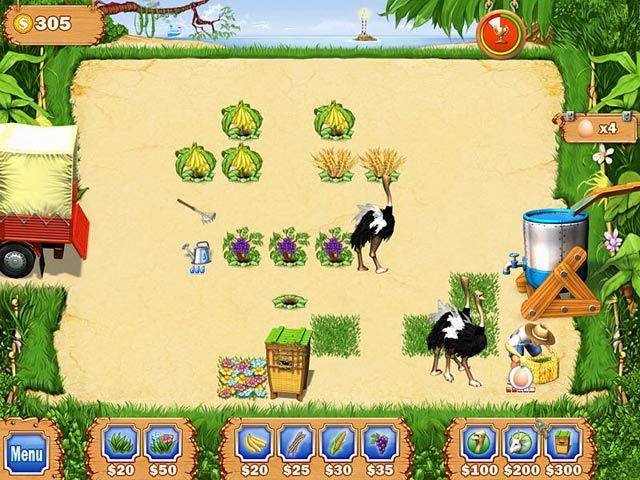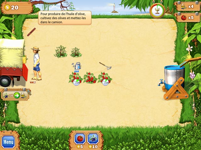 Lorsqu'un ouragan ravage une île tropicale, les habitants font le pari de rétablir son lustre d'antan. Commencez avec un lopin, quelques outils et graines, et changez-le en une vaste terre fertile en utilisant vos talents en gestion du temps ! Plus vous êtes enthousiaste, plus la moisson sera abondante. Collectez et vendez des aliments, plantez et récoltez dans une course contre la montre dans Ferme Tropicale ! - Ferme Tropicale