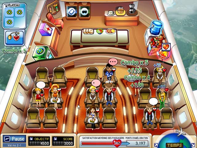 Starlink Airlines a fait faillite. En apprenant la perte de son emploi, Claire est paniquée... jusqu’à ce que le téléphone sonne. Les nouveaux dirigeants de Starlink Airlines veulent reprendre les affaires en engageant les meilleurs talents. Claire est un peu rouillée en tant qu’hôtesse de l’air. Remettez-la dans le bain en lui faisant vite servir le café aux passagers. Volez en pagaille de première classe en tant qu’hôtesse de l’air dans ce jeu à destination de la gestion du temps. - First Class Flurry