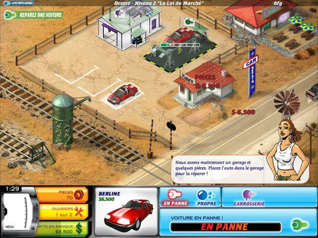 Kate finit les cours et retrouve l'atelier mécanique de son père en piteux état financier. Hors de question de laisser le garage familial tomber en ruine sans se battre ! Préparez-vous pour des défis variés dans 6 lieux différents. Plus de 10 types de voitures, différents ateliers, et plein de surprises cachées ! Pourrez-vous reconstruire le business automobile de la famille ? Développez vos garages depuis le désert du Nevada jusqu'au glamour d'Hollywood. Surfez sur l'océan Pacifique et assistez à la naissance d'une histoire d'amour inattendue. - Fix-it-up: L'Aventure de Kate