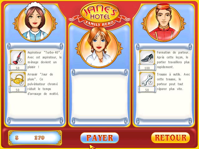 Vous désirez devenir un entrepreneur hors norme ? Vous en avez l'opportunité dans Jane's Hotel: Family Hero. Aidez Jane à acheter quatre hôtels internationaux, améliorer les lieux, et rembourser toutes ses dettes. En complément des services traditionnels habituels, vous pourrez désormais proposer des souvenirs à vos clients et prendre des photos. Cette suite passionnante de gestion du temps vous fera découvrir les aléas du métier d'hôtelier. - Jane`s Hotel: Family Hero