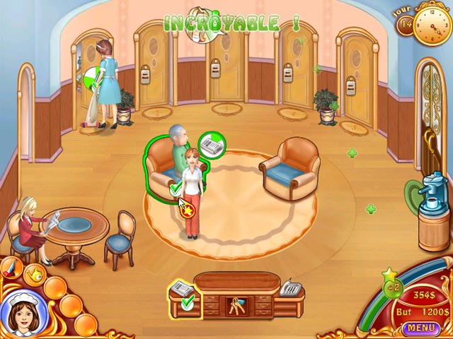 Aidez Jane à réaliser son rêve en construisant un superbe hôtel 5 étoiles ! Commençant avec un petit hôtel 2 étoiles dans la banlieue, vous vous forgez un chemin vers le sommet en améliorant l'établissement et en vous bâtissant une excellente réputation. Surveillez l'humeur des clients et répondez à toutes leurs attentes en construisant un terrain de golf, en leur servant des boissons exotiques et des repas exquis ou en nettoyant simplement leur chambre. - Jane's Hotel
