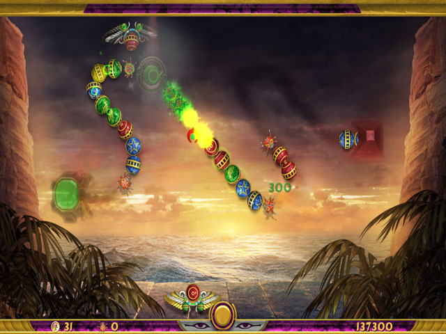 Aventurez-vous en Egypte pour retrouver les objets volés de la tombe de la Reine Néfertiti et du Roi Akhénaton dans ce jeu épique de destruction de billes ! Des assassins ont profané la chambre funéraire des tombeaux de Néfertiti et d'Akhénaton, et, les dépouillant de leurs vases canopes, les empêchent d'accéder à l'au-dela ! Utilisez les ailes de faucon d'Horus pour vous battre et explorez un Proche-Orient exotique dans Luxor: Quest for the Afterlife ! - Luxor: Quest for the Afterlife