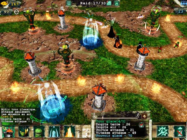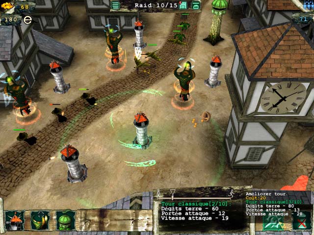 Dans ce jeu de stratégie en temps réel, vous devrez bâtir des tours pour défendre votre peuple. Au fur et à mesure de votre progression, vous pourrez améliorer vos tours ou en construire de nouvelles avec l’or que vous aurez gagné et ajouter des améliorations spéciales grâce aux points d’expérience accumulés. Choisissez bien votre stratégie de défense pour protéger votre peuple. Un seul monstre qui passe au travers de vos défenses pourrait bien semer le chaos dans toute la ville ! - Master of Defense