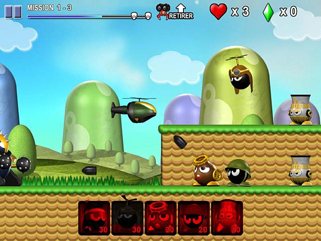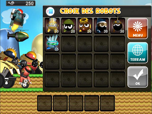 Aidez les Mini-robots à défendre leur planète d’une invasion de machines en érigeant des remparts d’unités pour leur résister. Accumulez de l’énergie pour assembler des types de robots aux caractéristiques uniques, et choisissez les unités nécessaires à chaque niveau pour repousser les machines ennemies qui détruisent tout sur leur passage. Faites preuve d’ingéniosité en disposant vos unités de façon à optimiser leur efficacité, et venez à bout de l’invasion pour sauver la planète verte ! - Mini Robot Wars